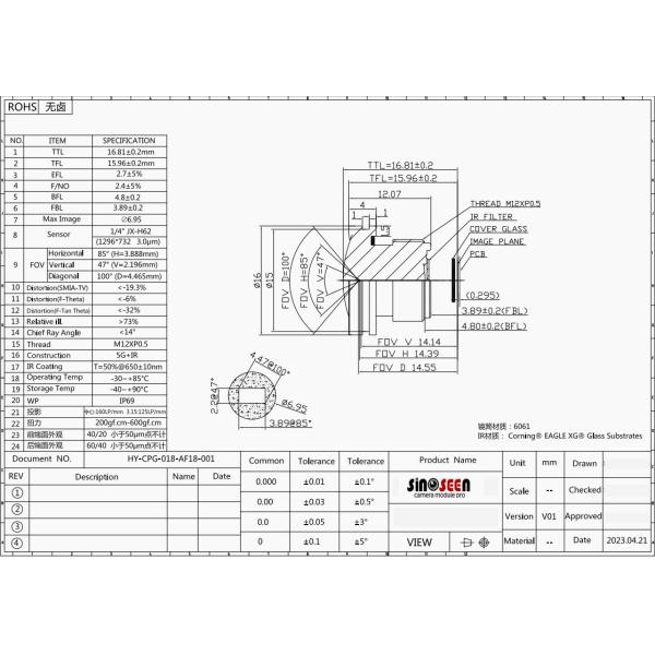 1/4'' M12 Mount Lens 650IR F2.4 EFL2.7 Camera Module Lens Images |